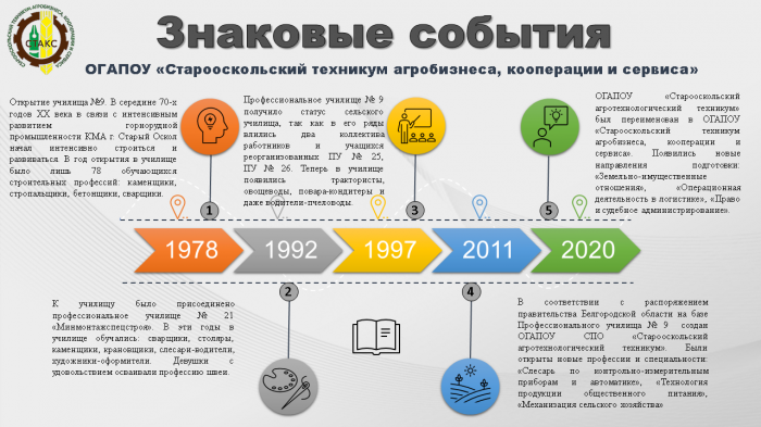 В настоящее время ОГАПОУ «Старооскольский техникум агробизнеса, кооперации и сервиса» - это динамично развивающееся многопрофильное образовательное учреждение, обеспечивающее качество профессиональной подготовки выпускников, создающее условия для личностного развития и профессионального самоопределения молодежи.